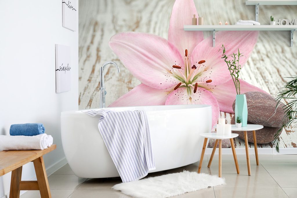 Öntapadó fotótapéta csendélet zen kövekből, rózsaszín liliommal