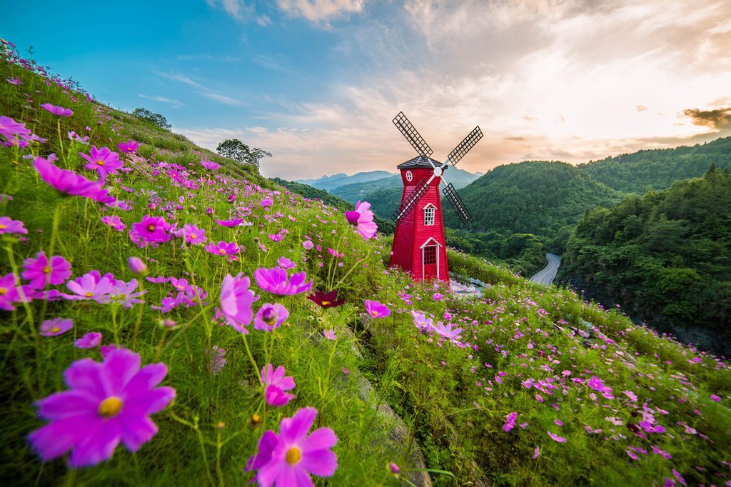 Öntapadó fotótapéta egy malomról a gyönyörű természet közepén
