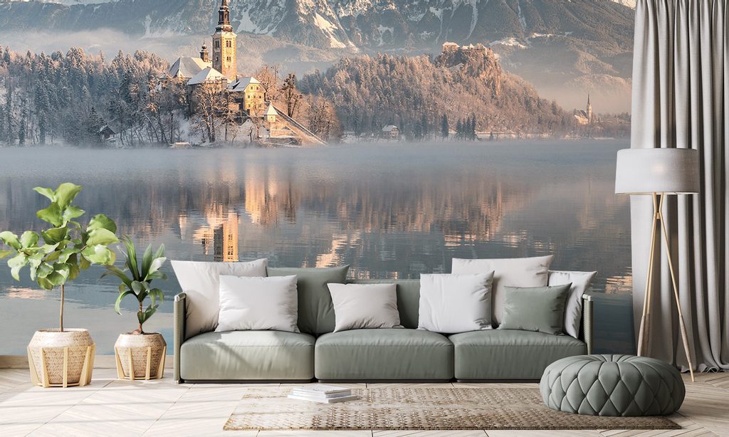 Öntapadó fotótapéta egy templom Bledben, Szlovéniában