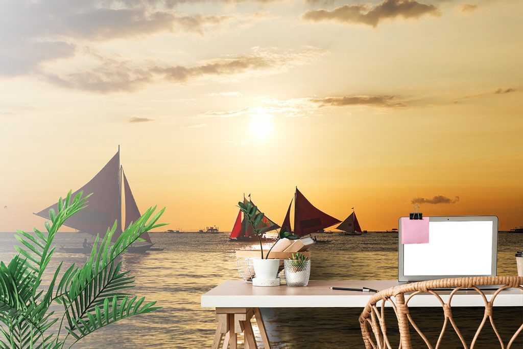 Öntapadó fotótapéta egy vitorlásról naplementekor
