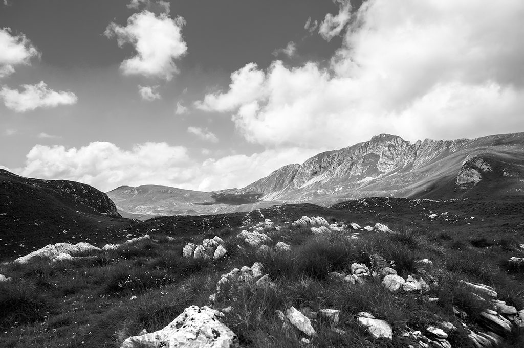 Öntapadó fotótapéta Falikép Montenegró vad természete fekete-fehér változatban