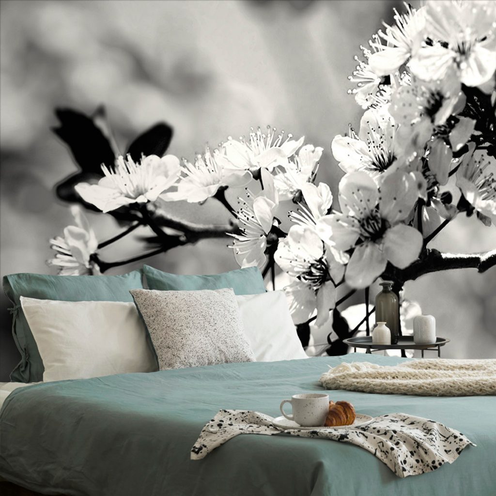 Öntapadó fotótapéta fekete-fehér cseresznyevirágok