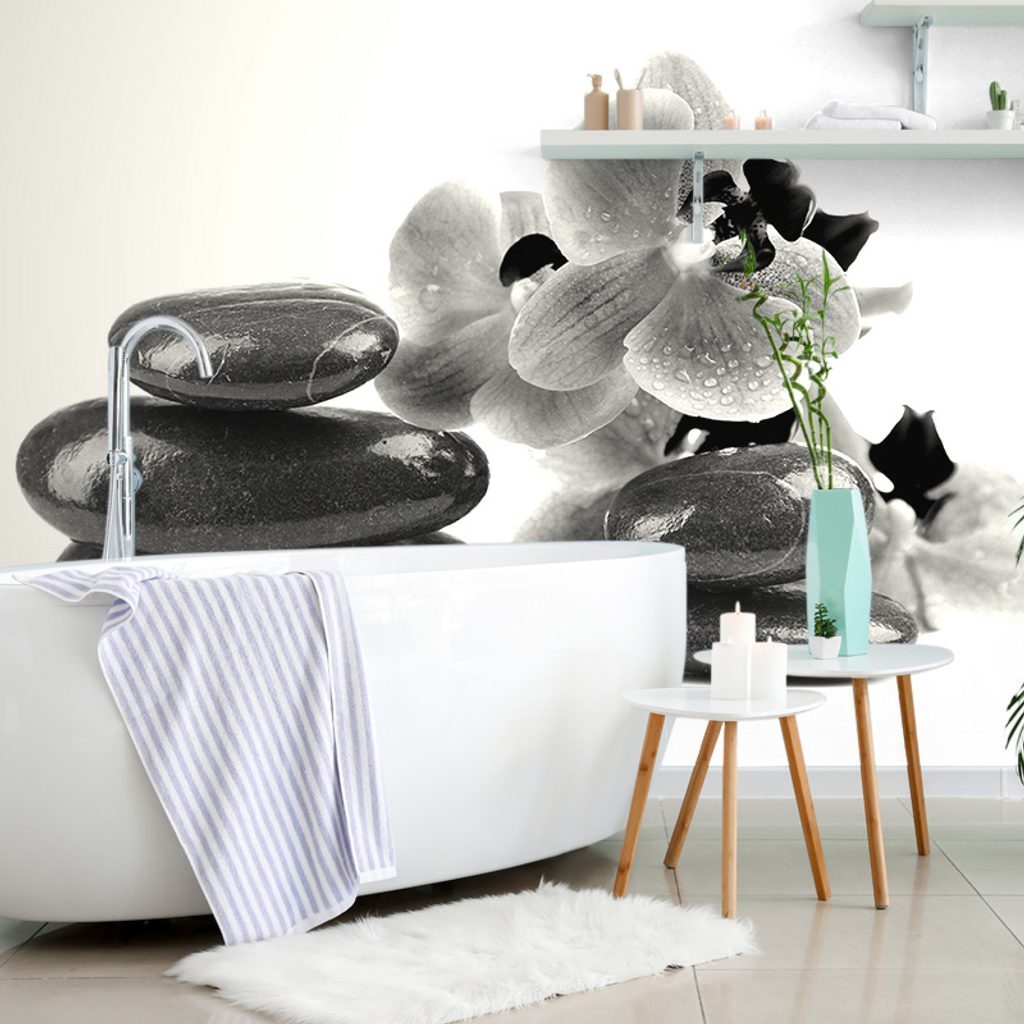 Öntapadó fotótapéta fekete-fehér masszázskövek orchideával