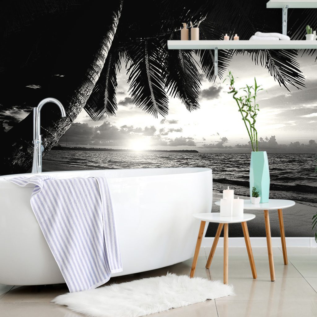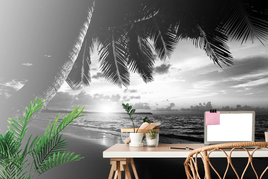 Öntapadó fotótapéta fekete-fehér napfelkelte a tengerparton a Karib-térségben