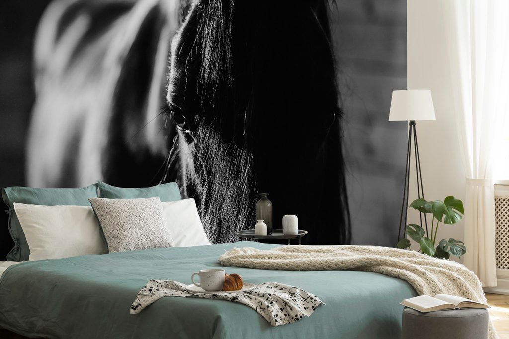 Öntapadó fotótapéta fenséges ló falfestménye fekete-fehér kivitelben