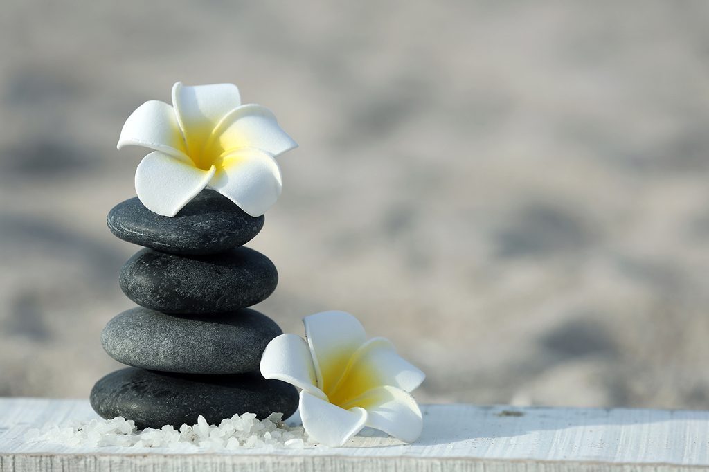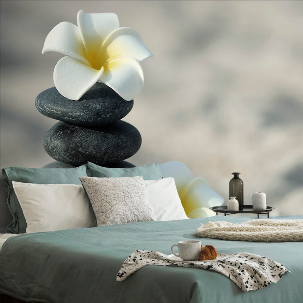 Öntapadó fotótapéta gyönyörű plumeria virágok kövekkel