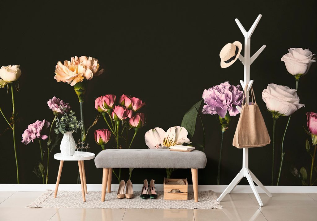 Öntapadó fotótapéta különböző virágok sötét háttér előtt