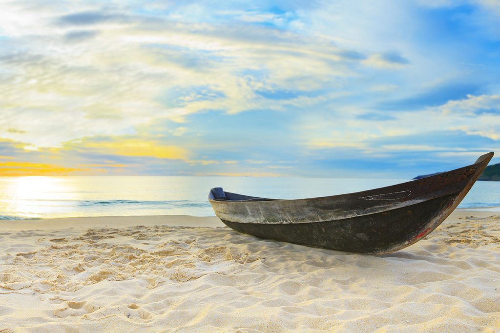 Öntapadó fotótapéta magányos hajó a tengerparton