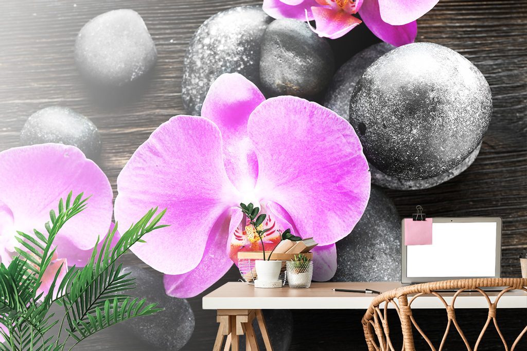Öntapadó fotótapéta orchidea zen köveken