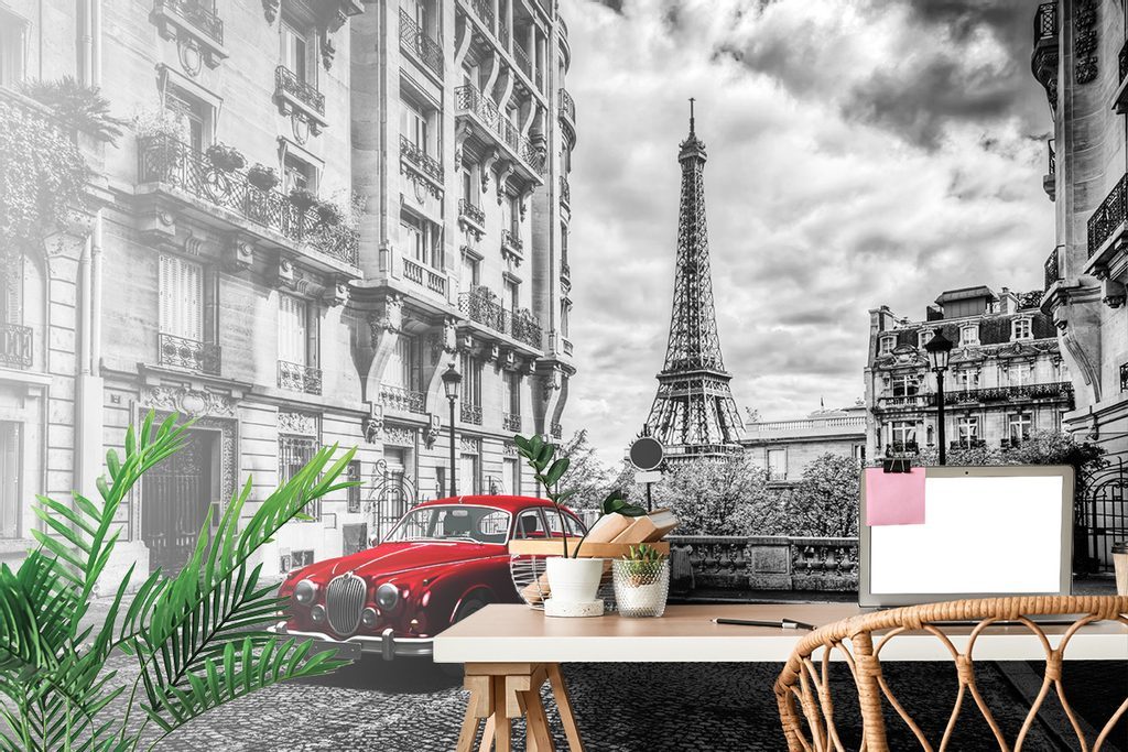 Öntapadó fotótapéta piros veterán autó a történelmi Párizsban