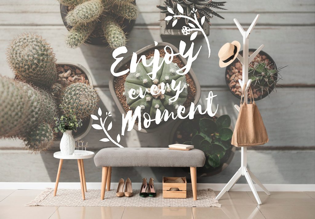 Öntapadó fotótapéta stílusos felirattal Enjoy every moment