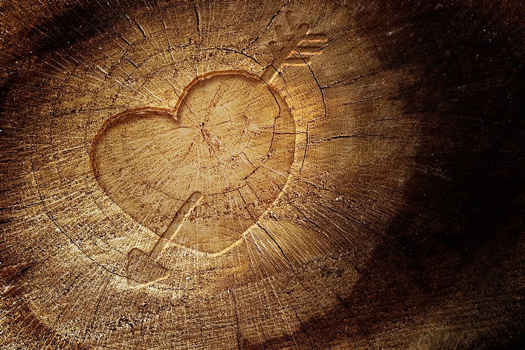 Öntapadó fotótapéta szív nyíllal egy fatönkön