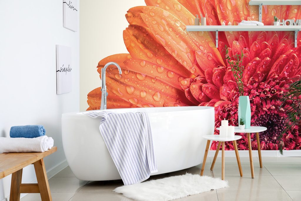 Öntapadó fotótapéta vízcseppekkel borított gerbera