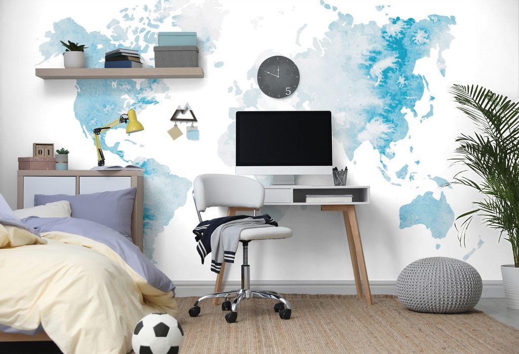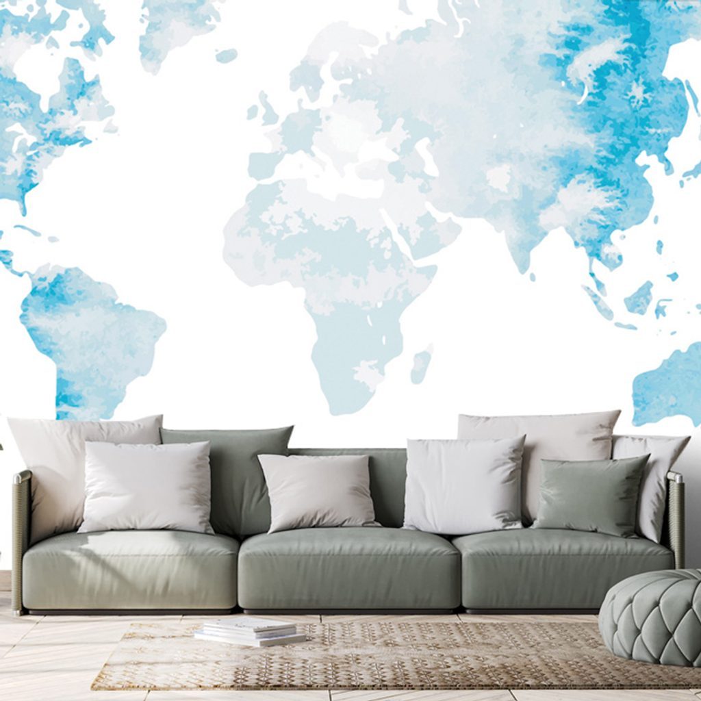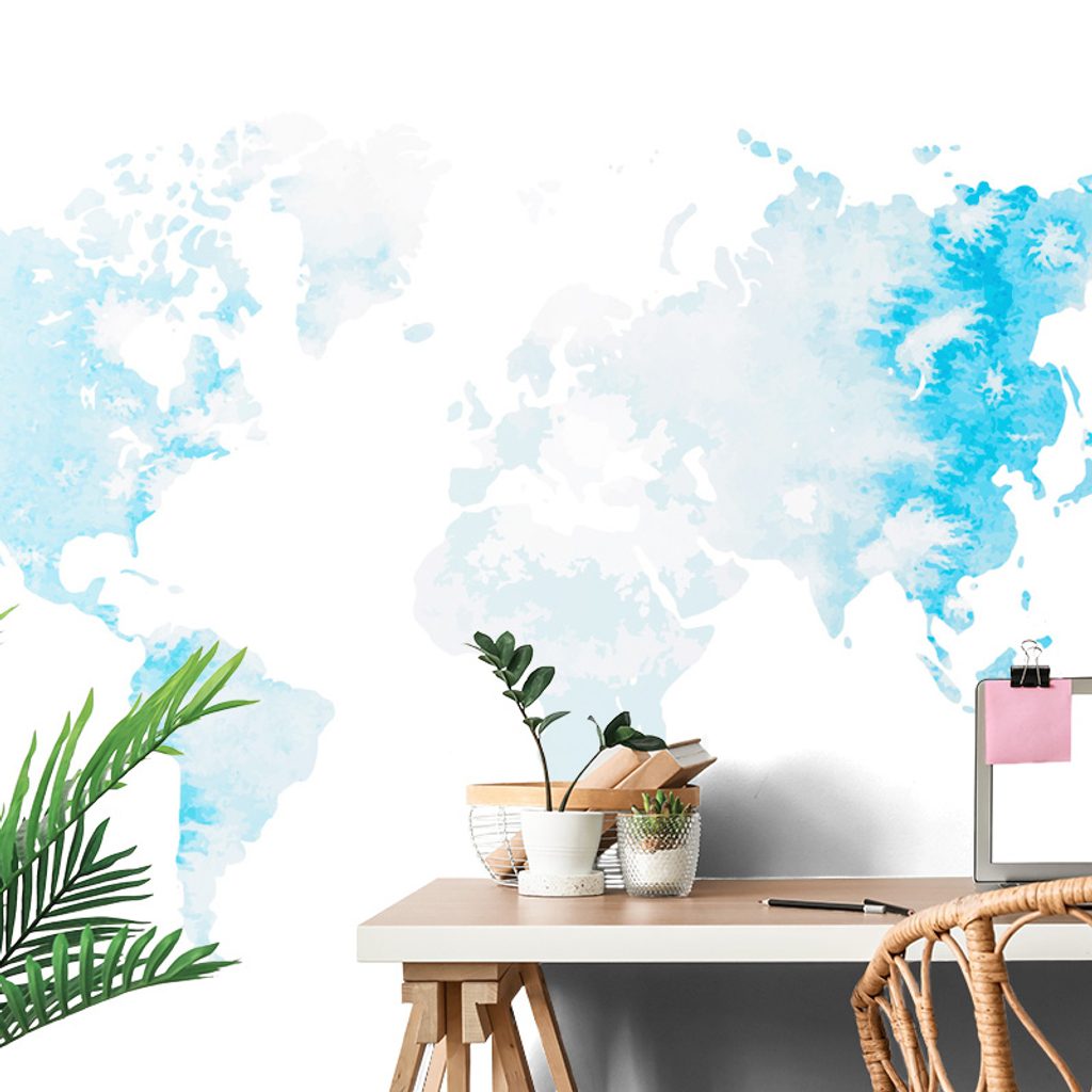 Öntapadó tapéta akvarell világtérkép világoskék színben