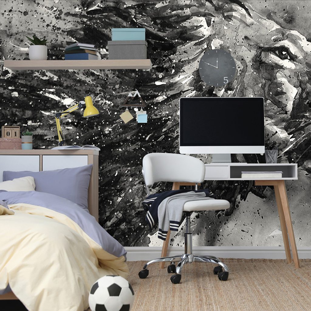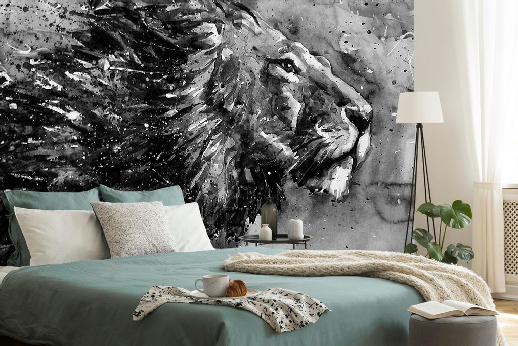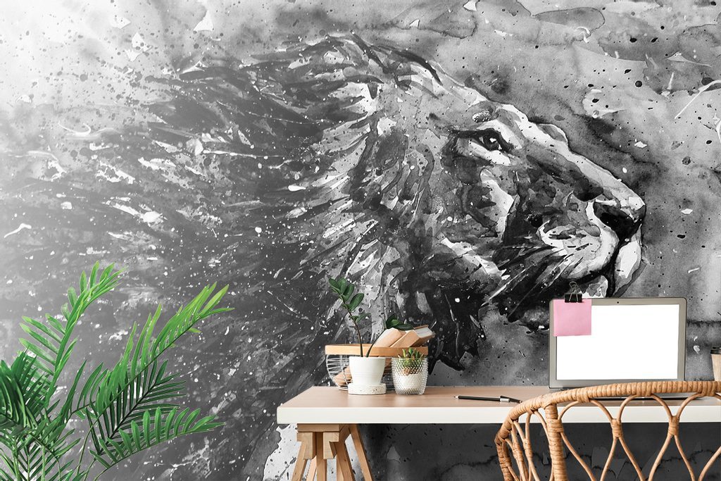 Öntapadó tapéta az állatok királya fekete-fehér akvarell kivitelben