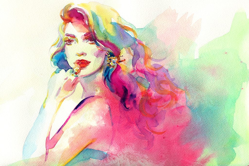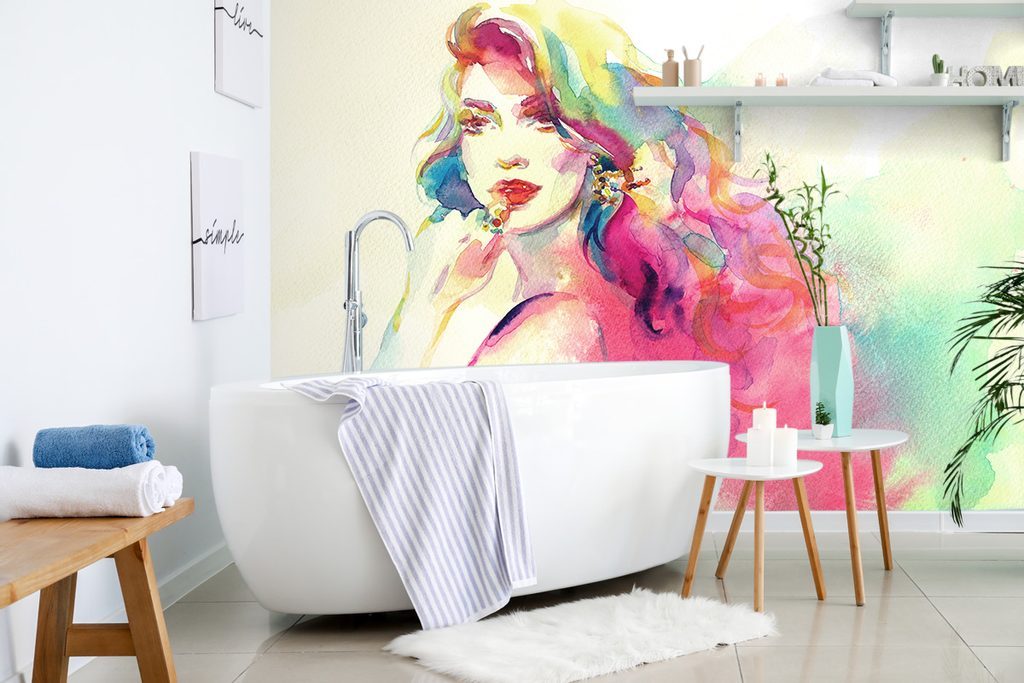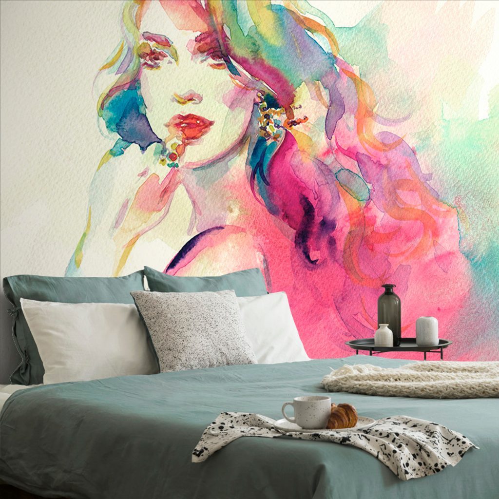 Öntapadó tapéta egy hölgy portréja akvarell kivitelben