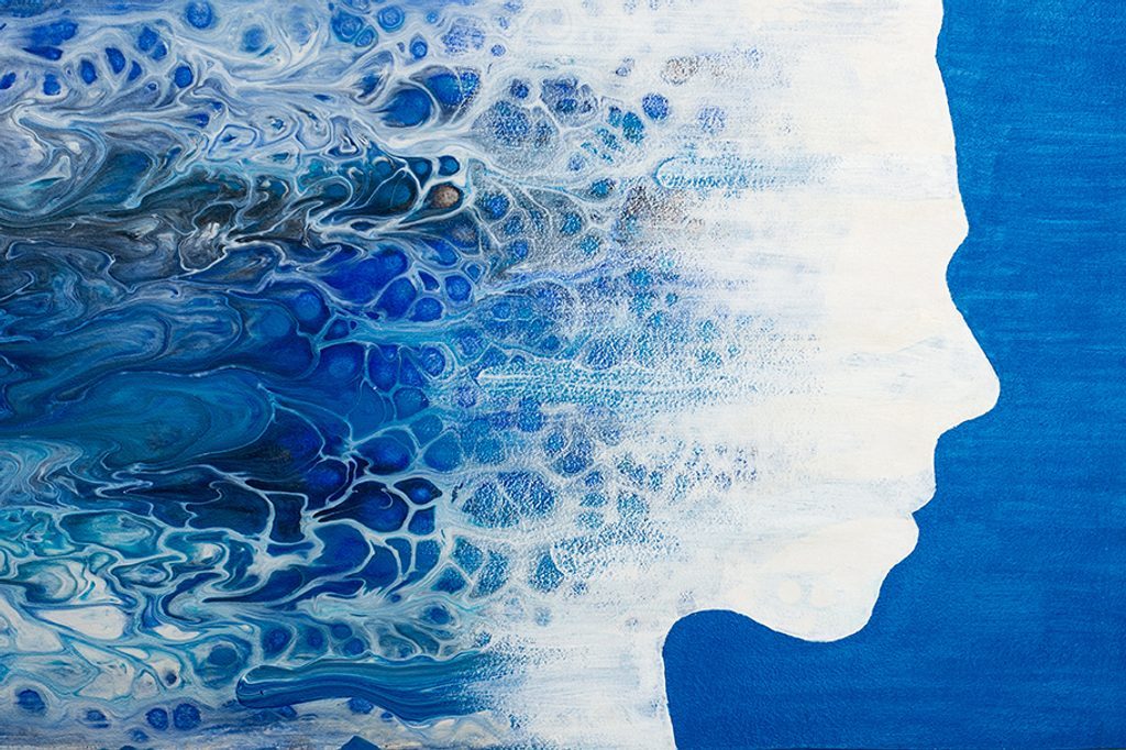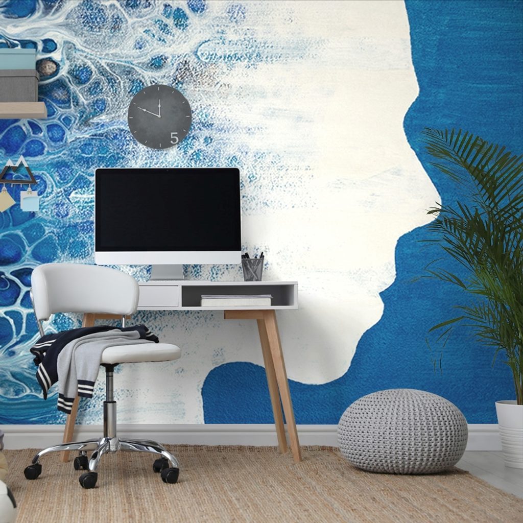 Öntapadó tapéta egy nő profilja kék absztrakcióban