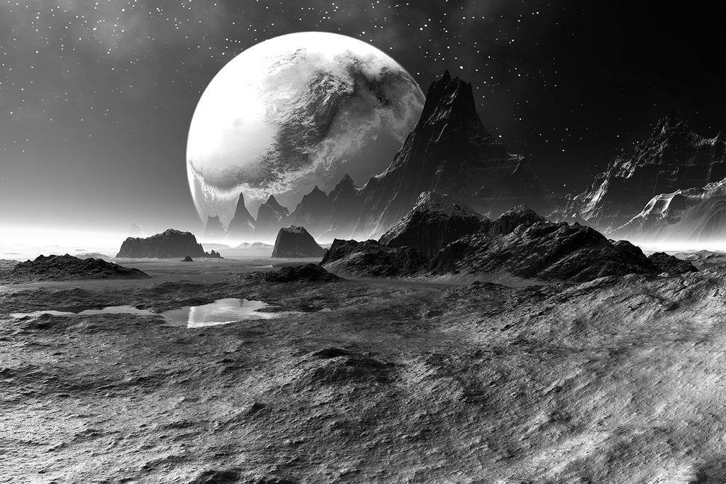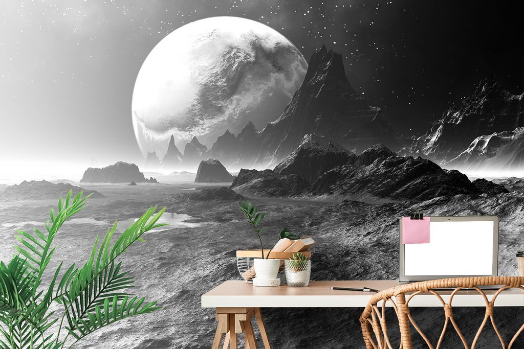 Öntapadó tapéta egyedi fekete-fehér fantasy bolygó