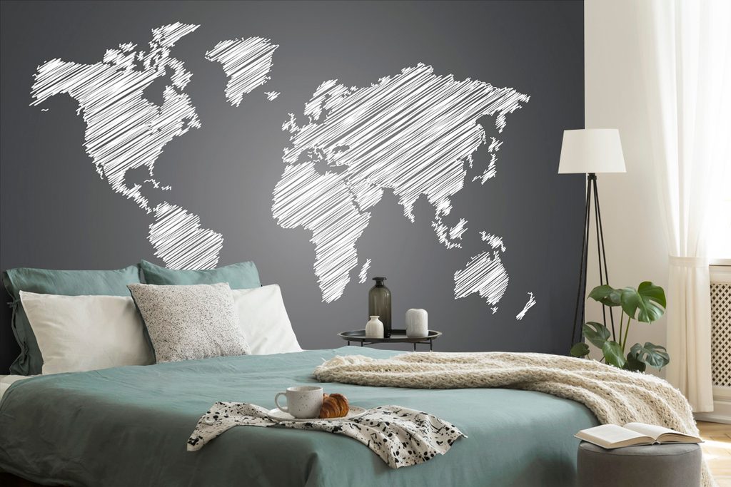Öntapadó tapéta érdekes térkép fekete-fehér alapon