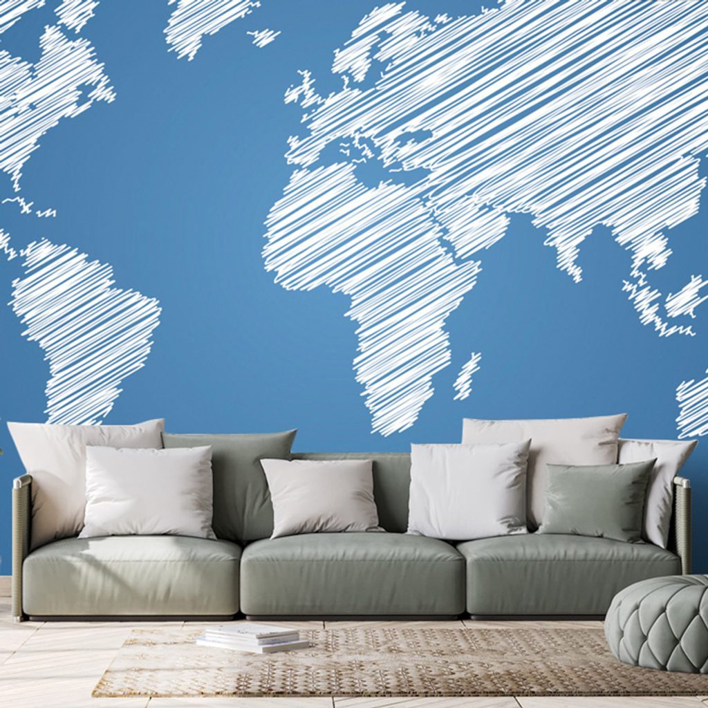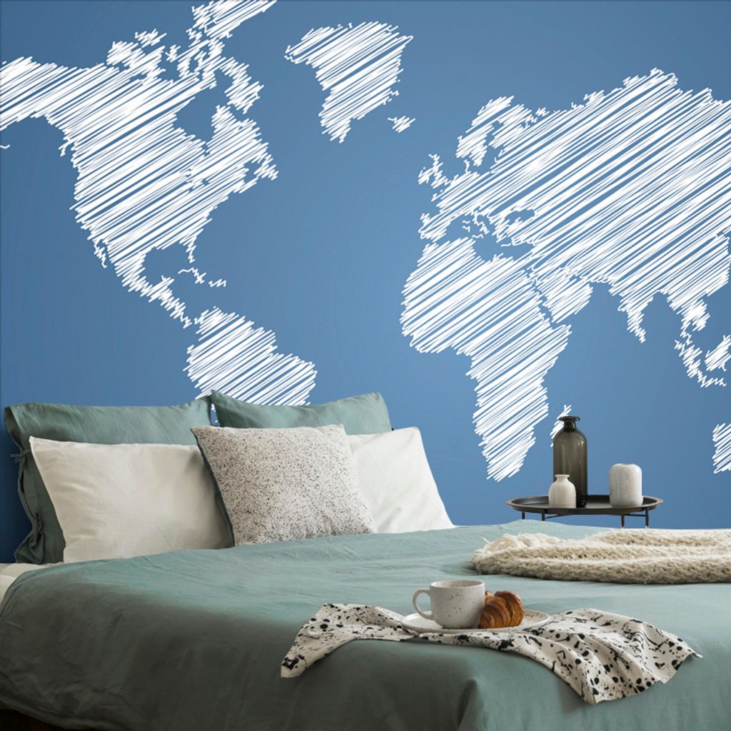 Öntapadó tapéta érdekes térkép kék alapon