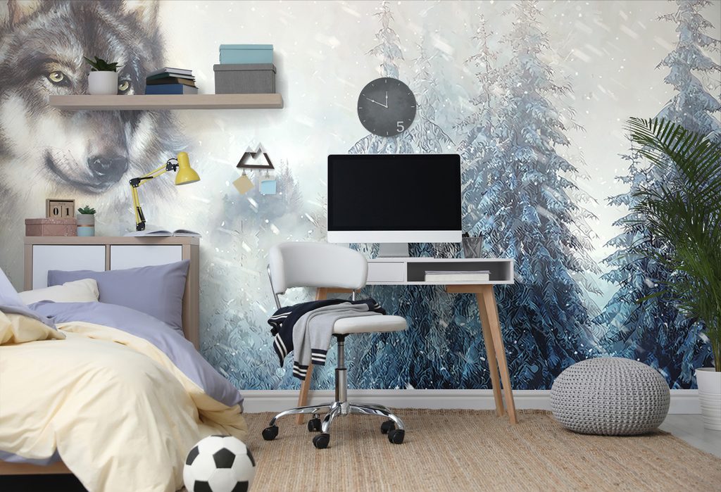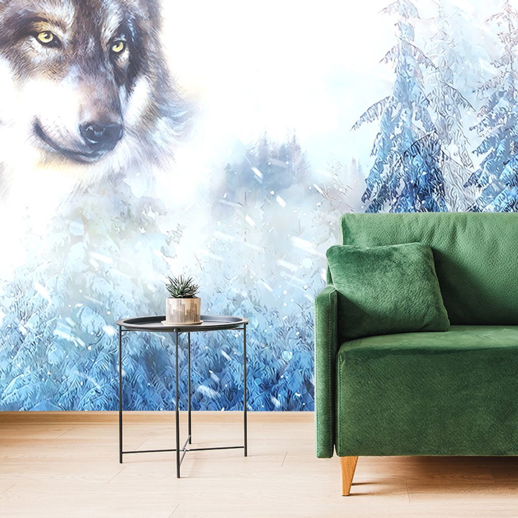 Öntapadó tapéta farkas a téli természetben festmény hatású