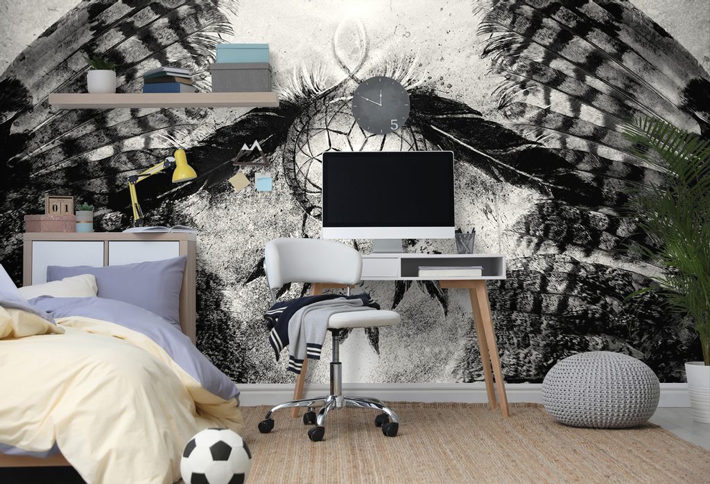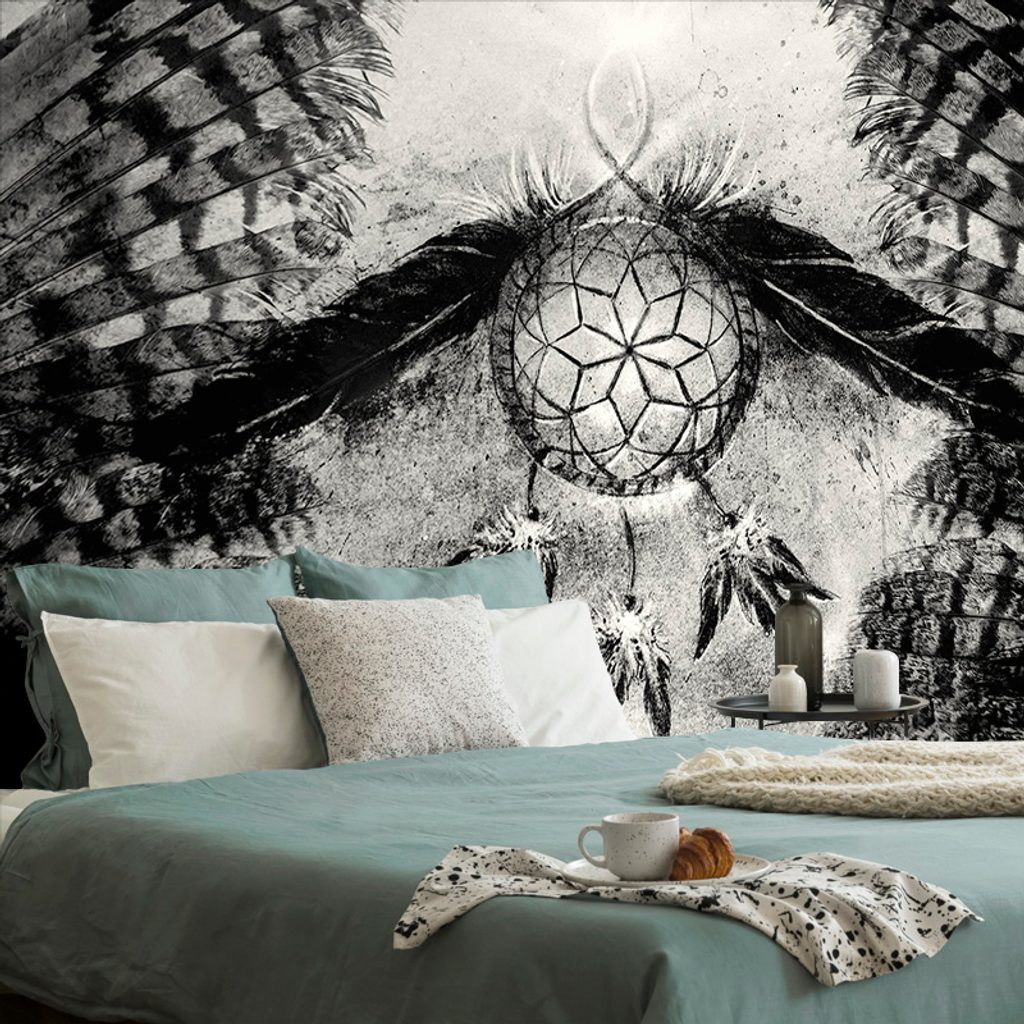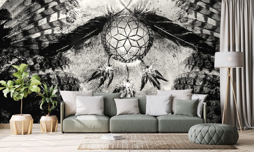 Öntapadó tapéta Fekete-fehér álomfogó indián elemekkel