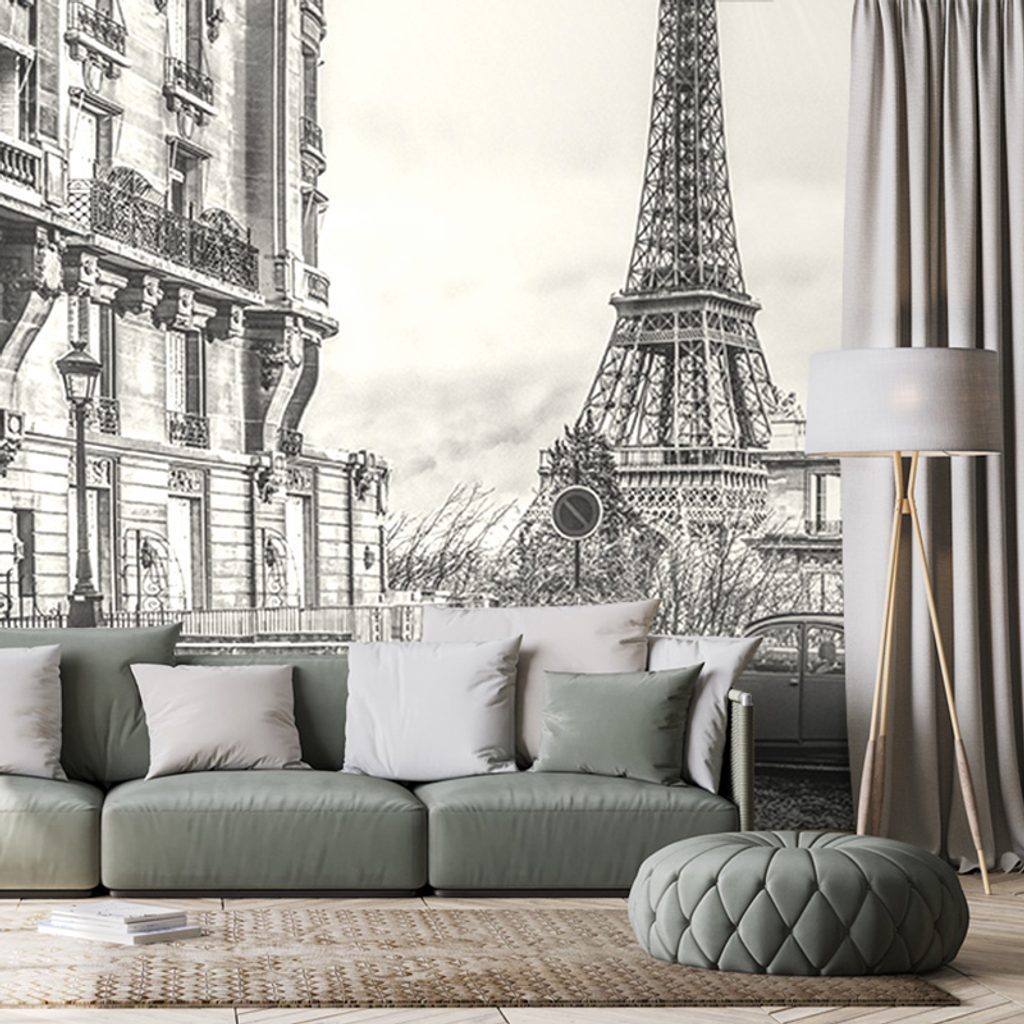 Öntapadó tapéta fekete-fehér retro kilátás az Eiffel-toronyra