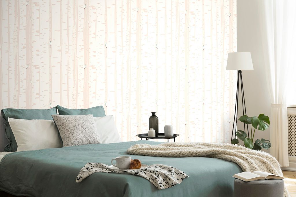Öntapadó tapéta fenséges fák egy romantikus rózsaszín háttéren