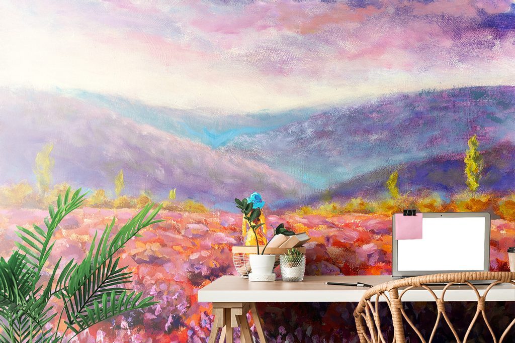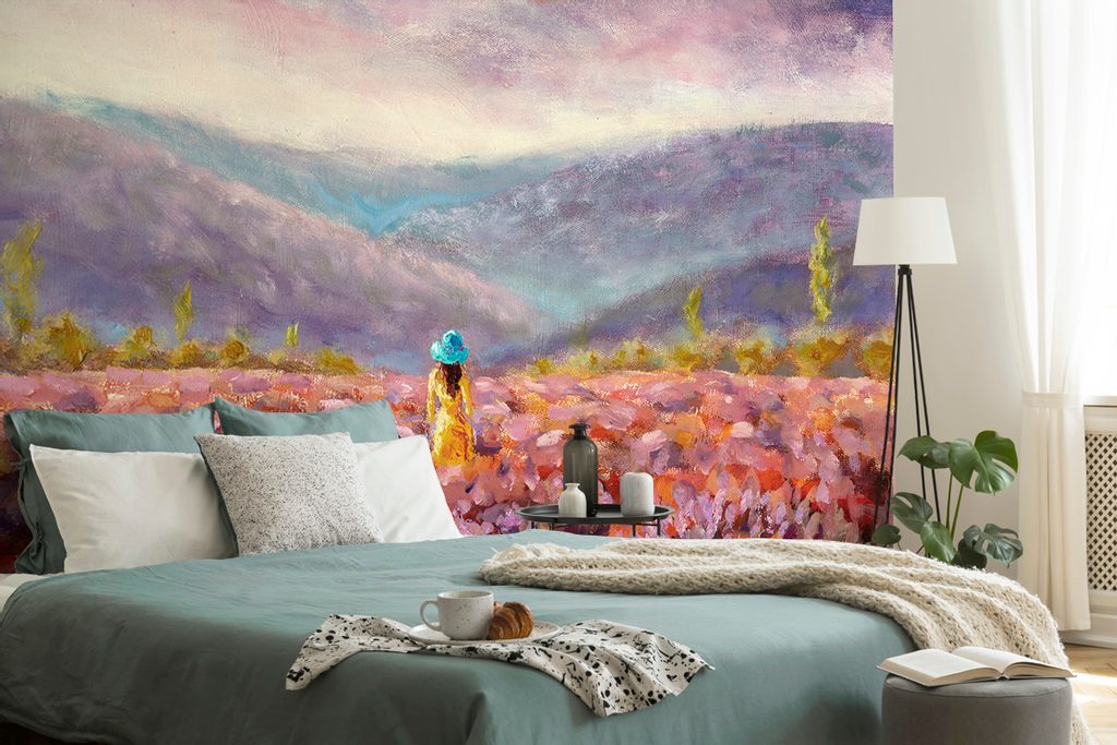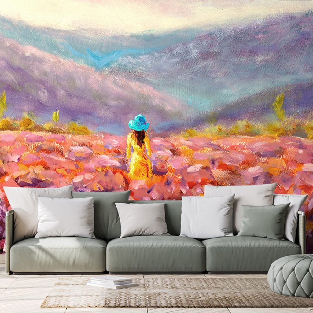 Öntapadó tapéta festmény egy nő egy virágos rét közepén
