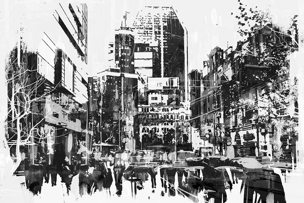 Öntapadó tapéta forgalmas utcája a metropolisz fekete-fehér design
