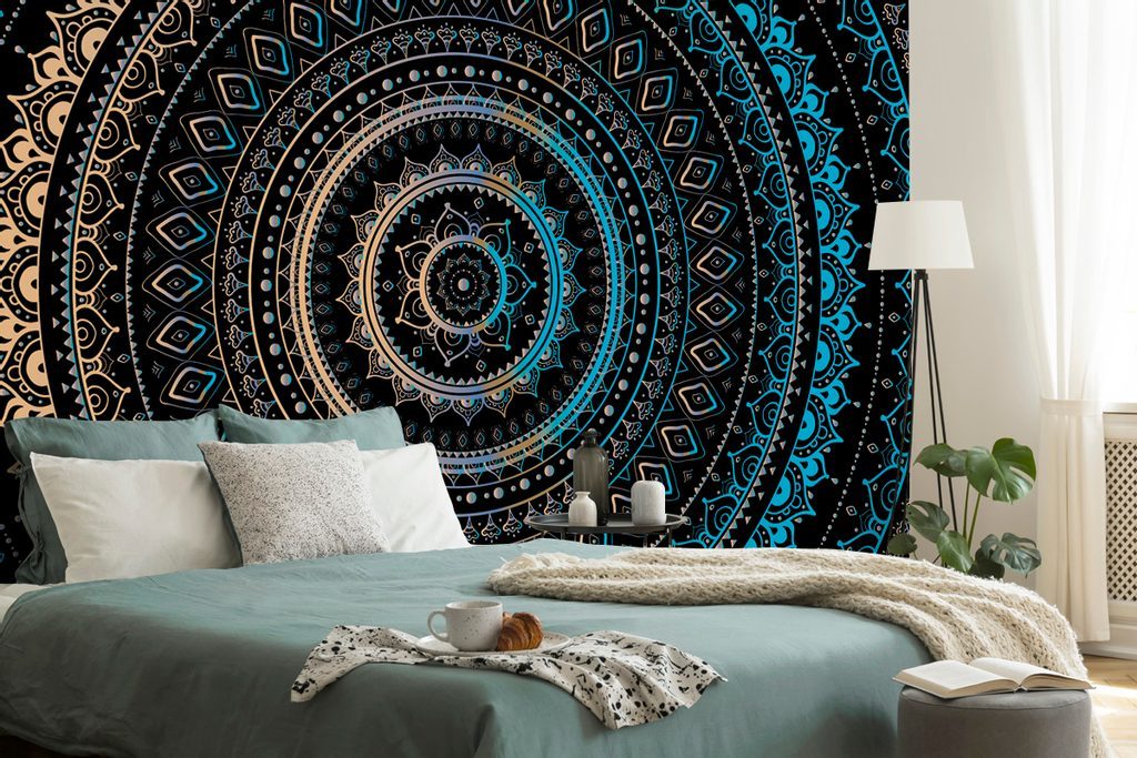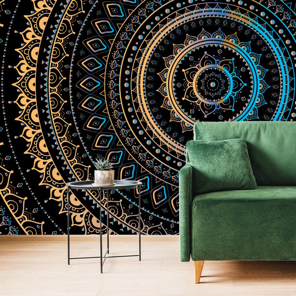 Öntapadó tapéta gyönyörű kék ​​arany Mandala