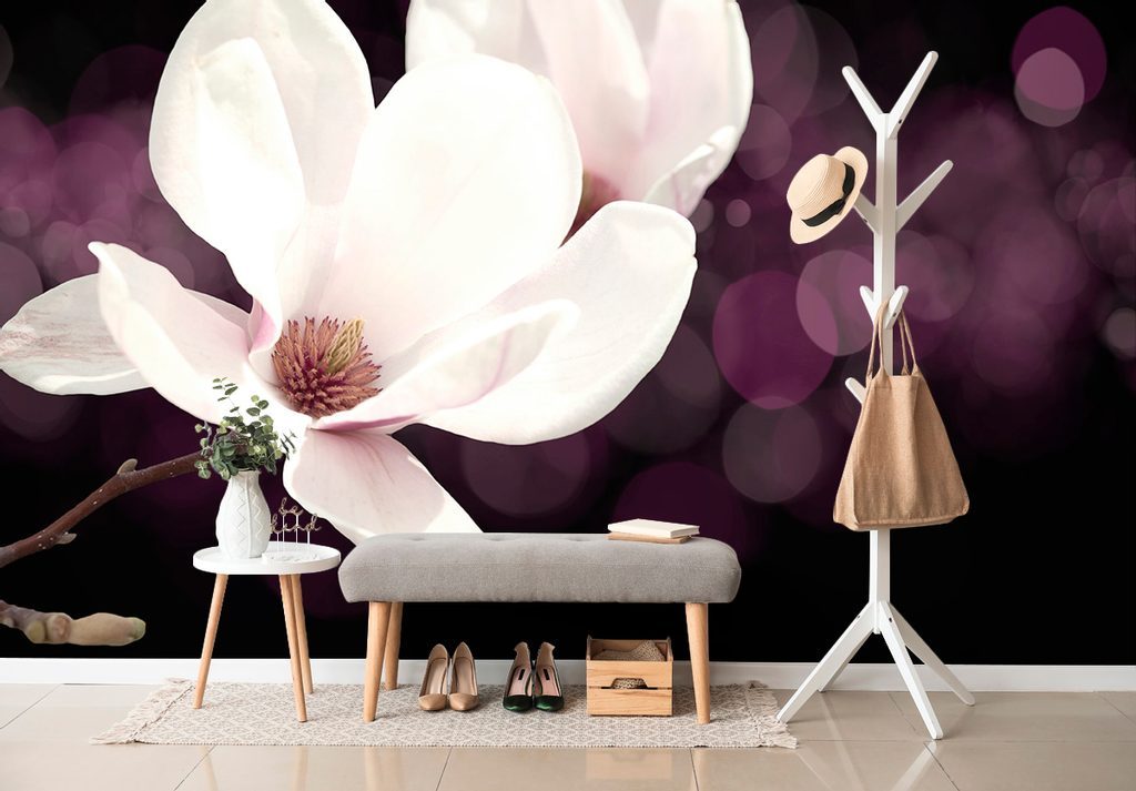 Öntapadó tapéta gyönyörű magnólia egy absztrakt háttéren