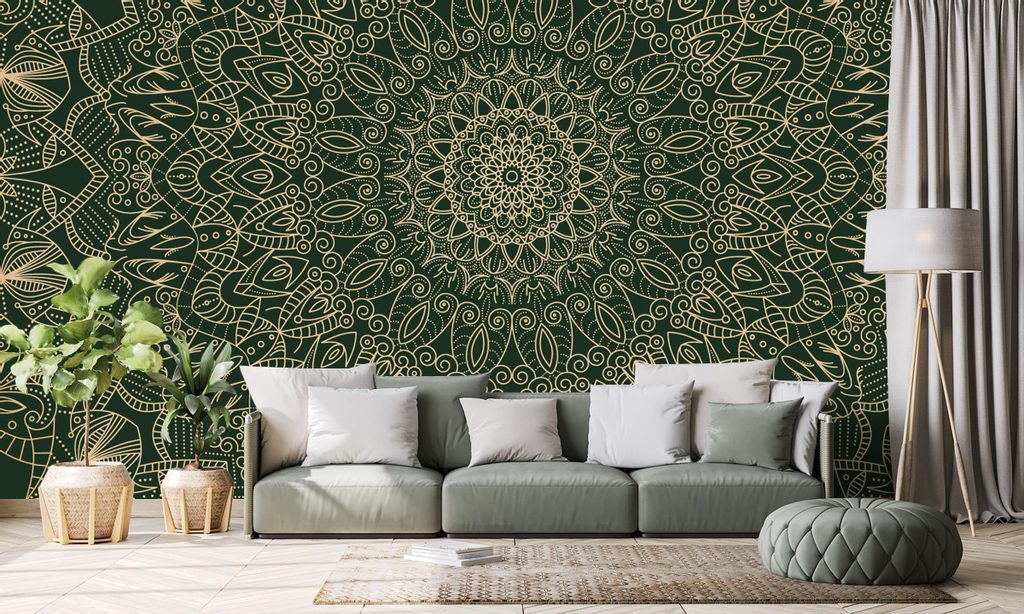 Öntapadó tapéta gyönyörűen kidolgozott Mandala zöld kivitelben