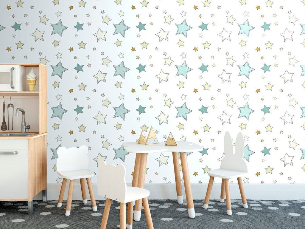 Öntapadó tapéta játékos csillagok fehér alapon