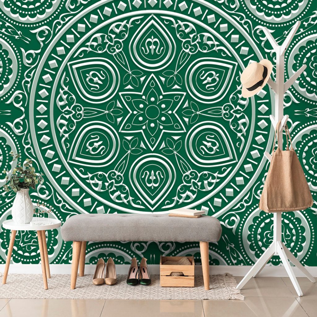Öntapadó tapéta kellemes Mandala zöld alapon