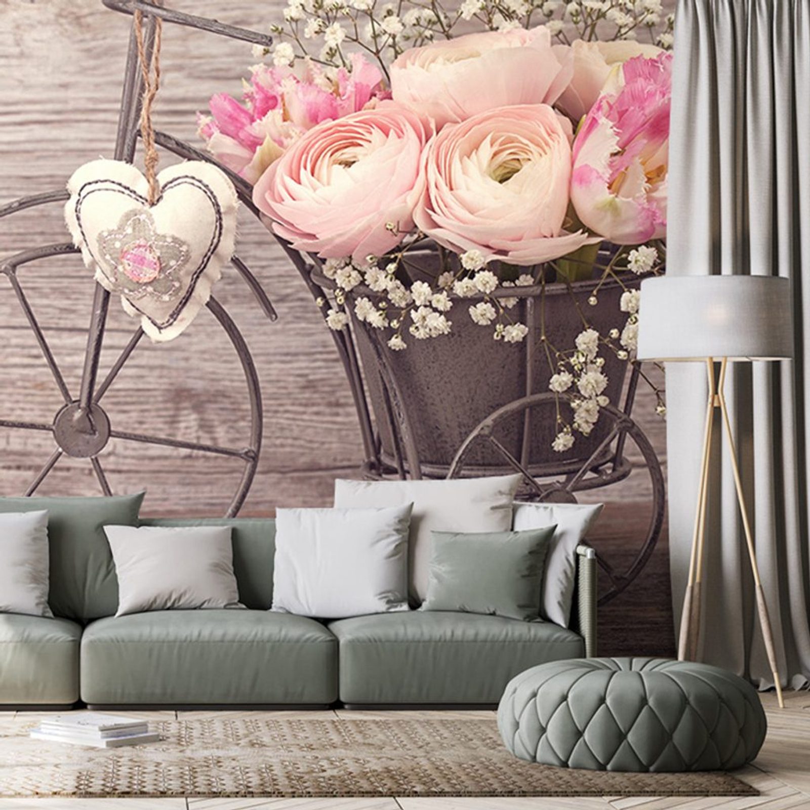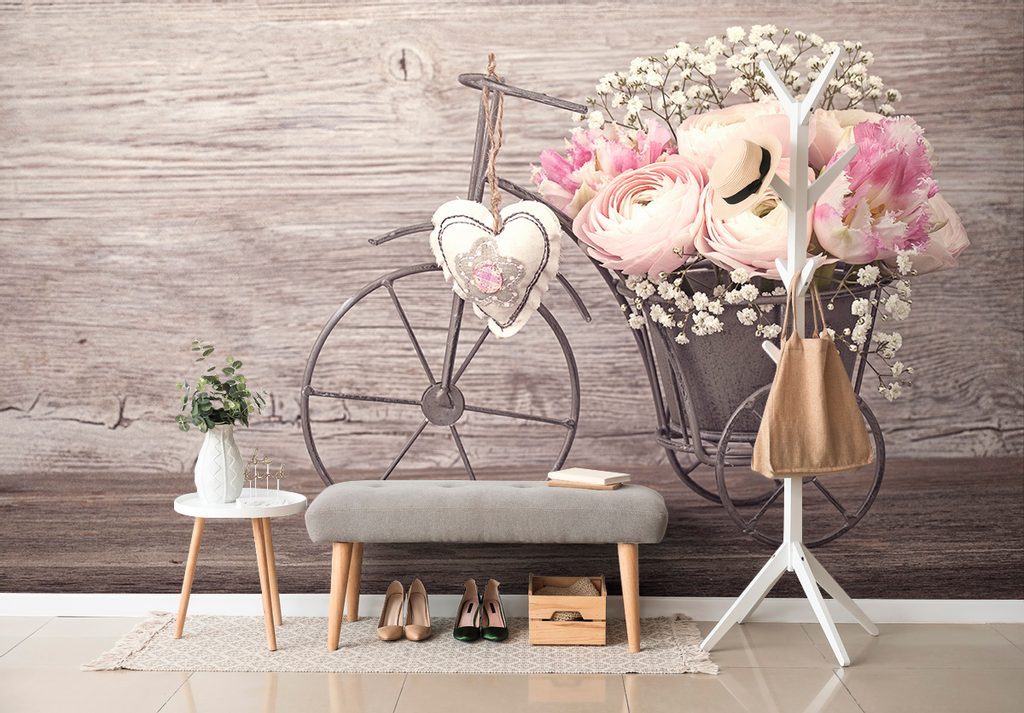 Öntapadó tapéta kerékpár virágokkal vintage stílusban