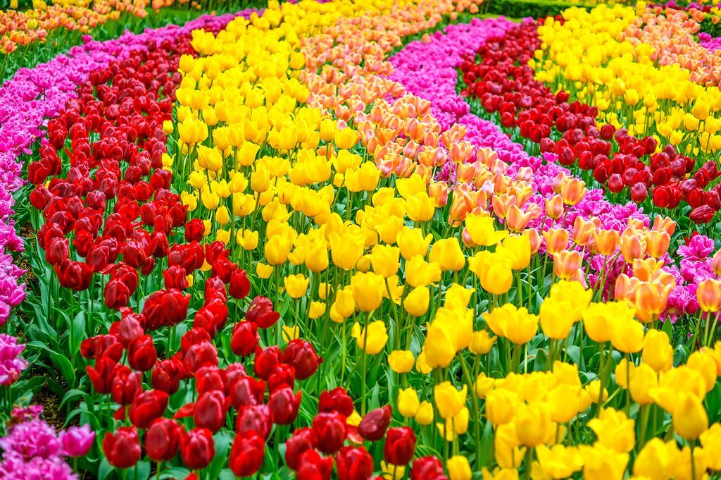 Öntapadó tapéta kert tele tulipánokkal