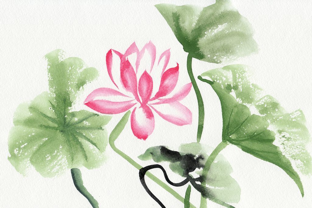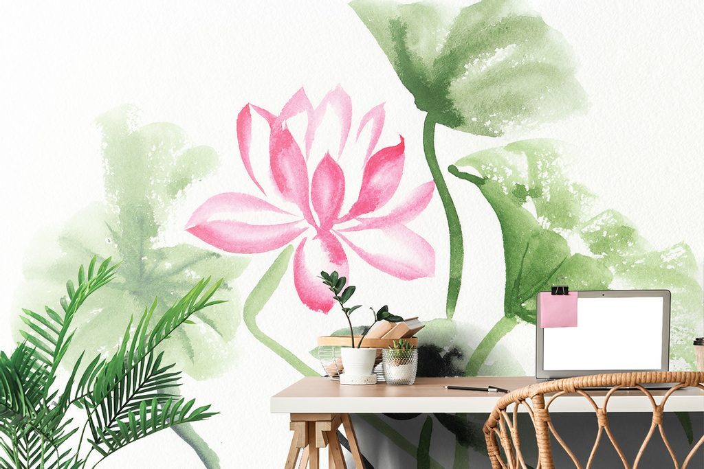 Öntapadó tapéta lótuszvirág akvarell kivitelben