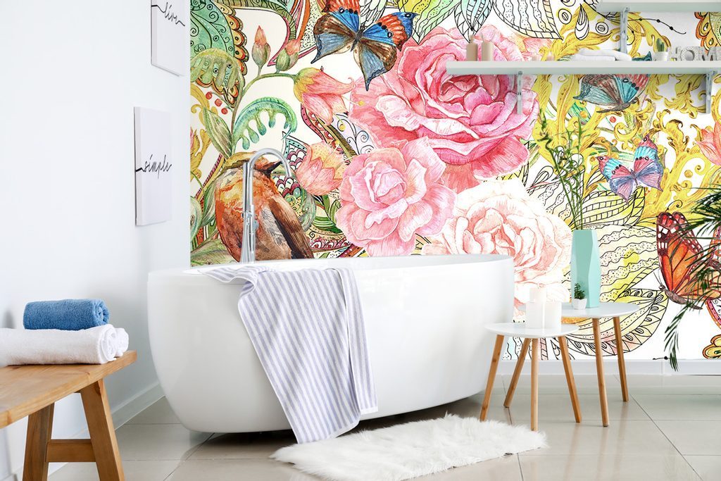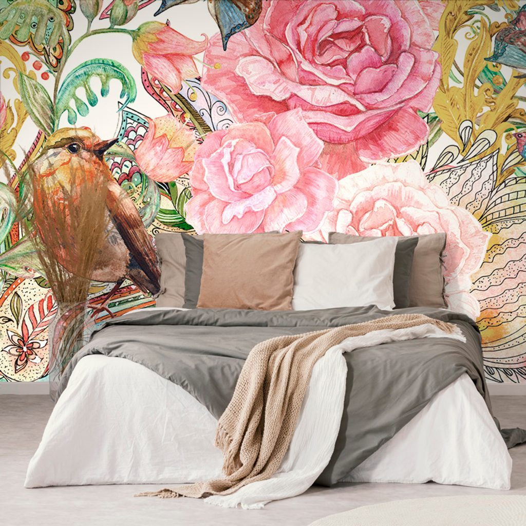 Öntapadó tapéta madár lepkékkel, vintage designban