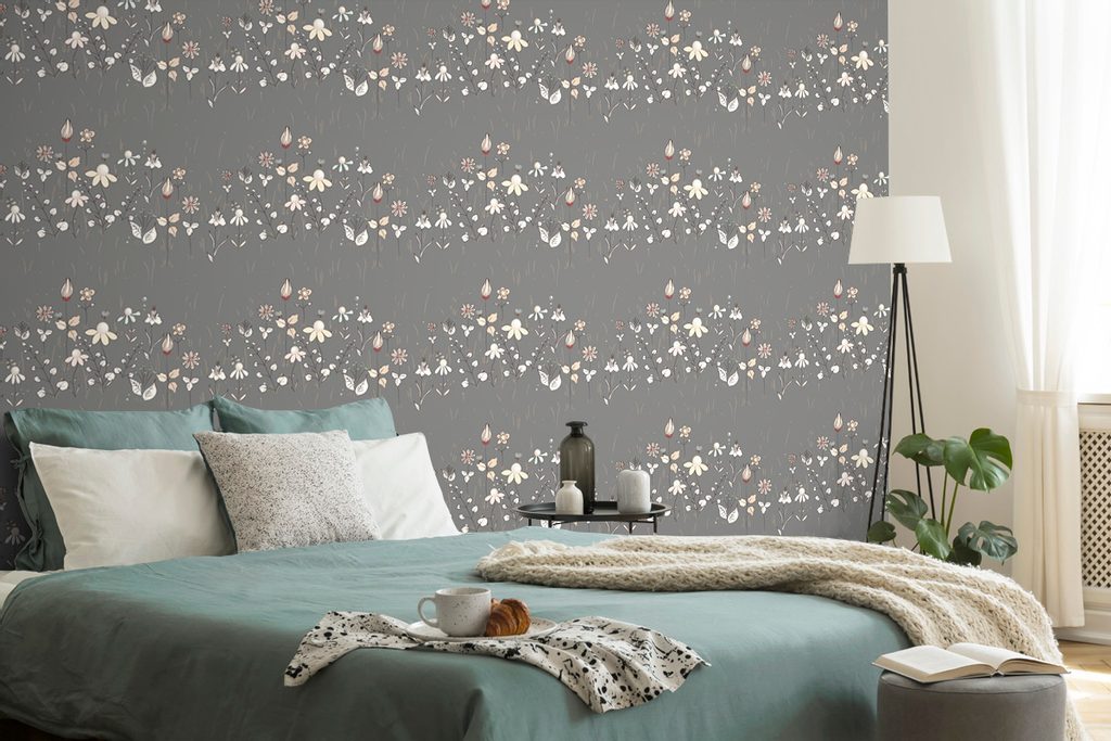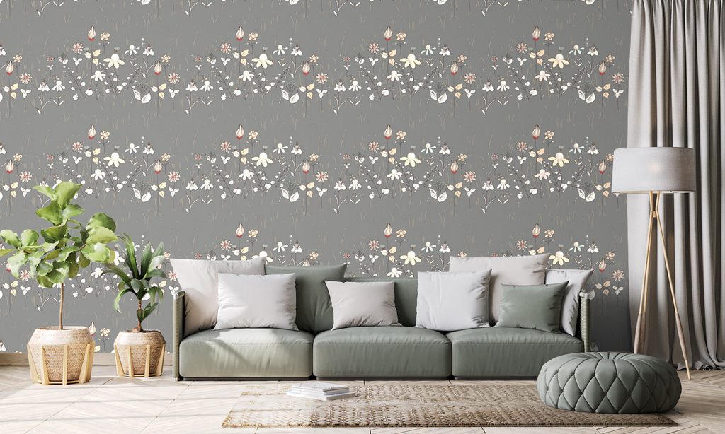 Öntapadó tapéta művészi rét szürke alapon