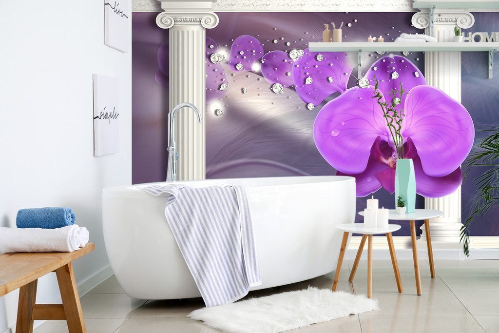 Öntapadó tapéta orchidea virágok ősi oszlopokkal