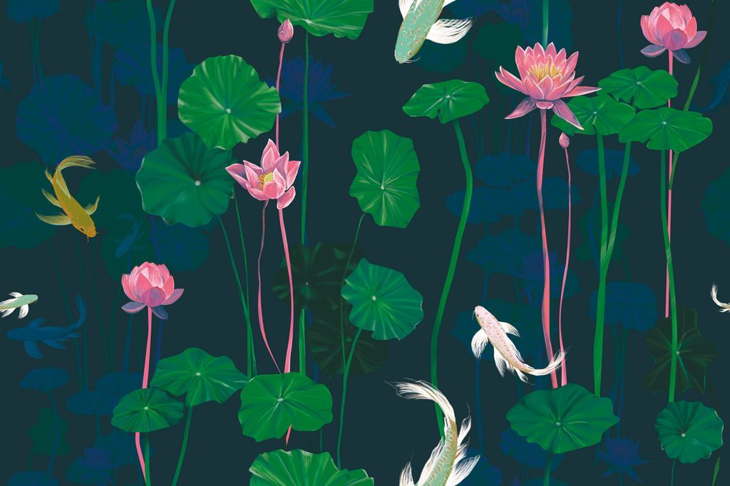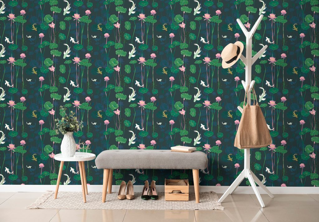 Öntapadó tapéta ponty a vízililiomok között