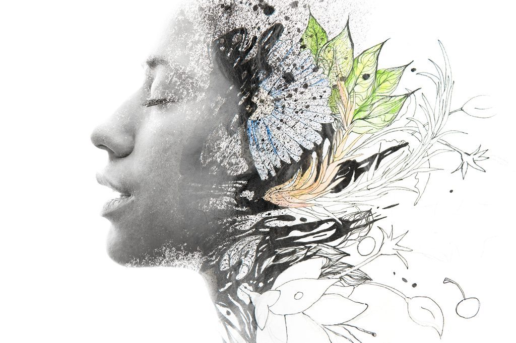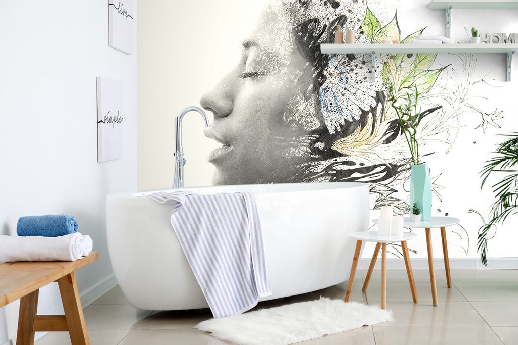 Öntapadó tapéta profilja egy női arc virágokkal