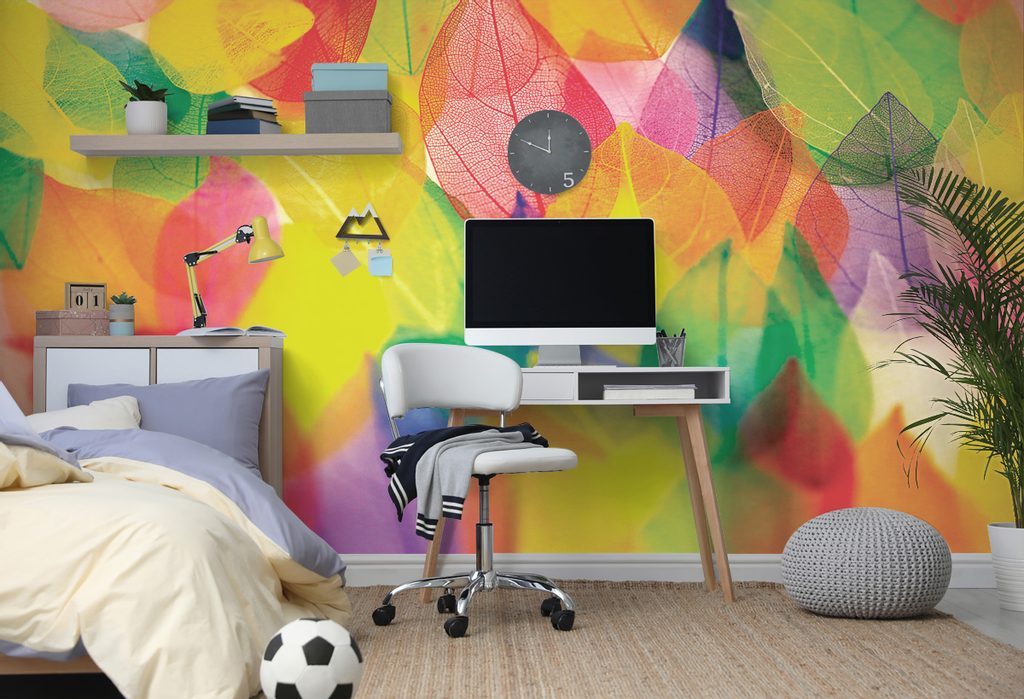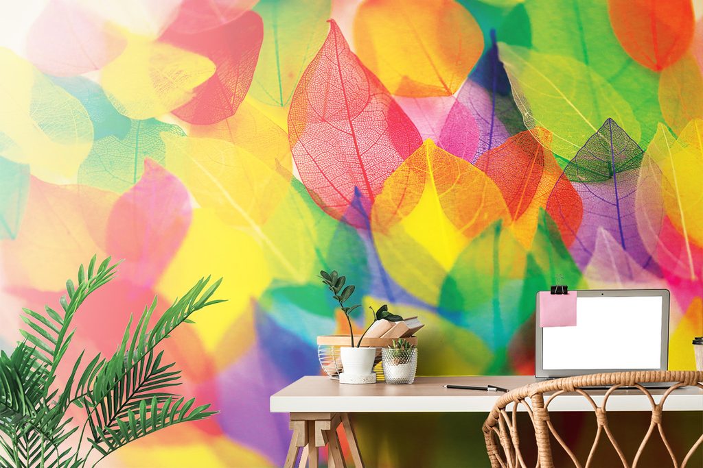 Öntapadó tapéta részletes színes levelek