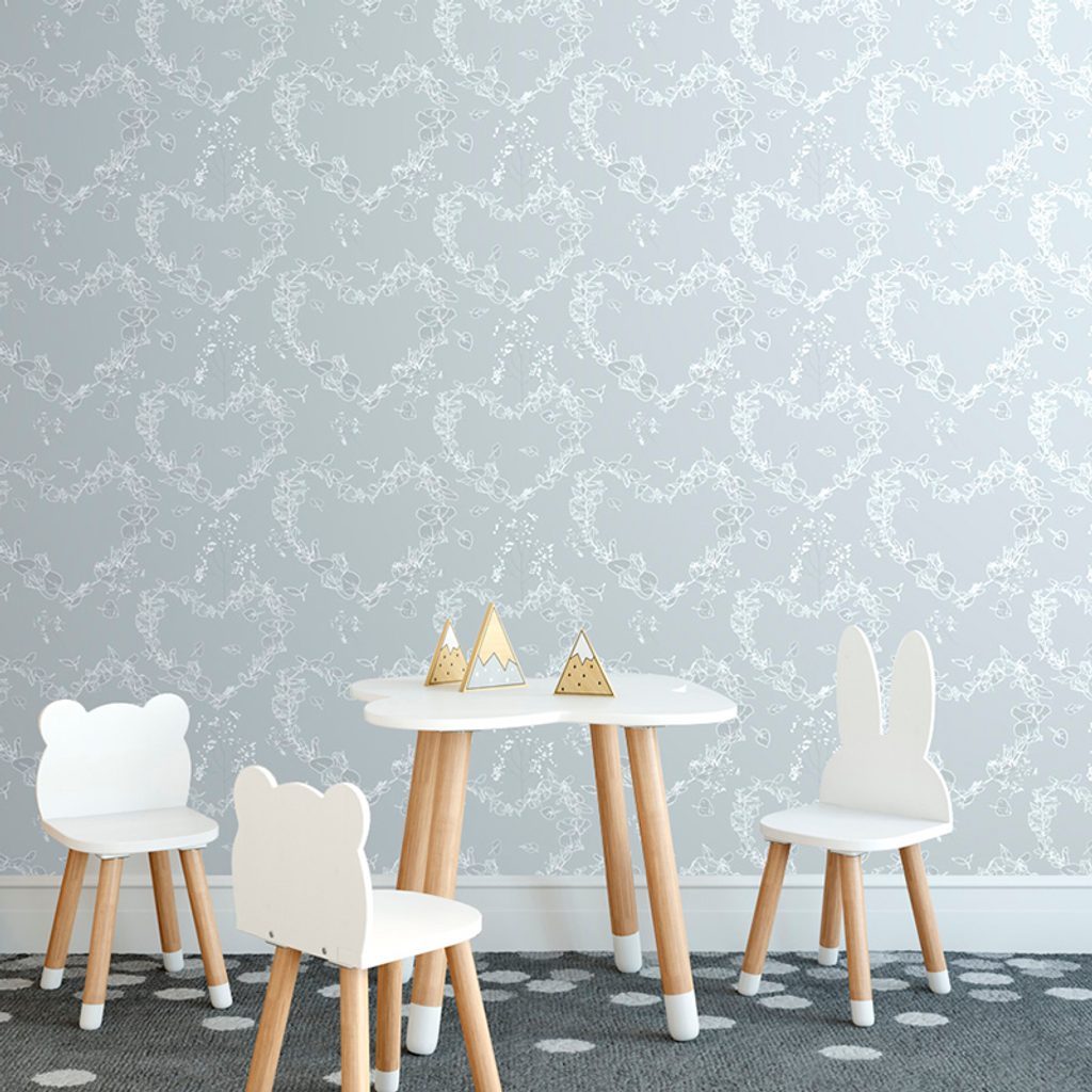 Öntapadó tapéta romantikus virágos szívek szürke háttéren