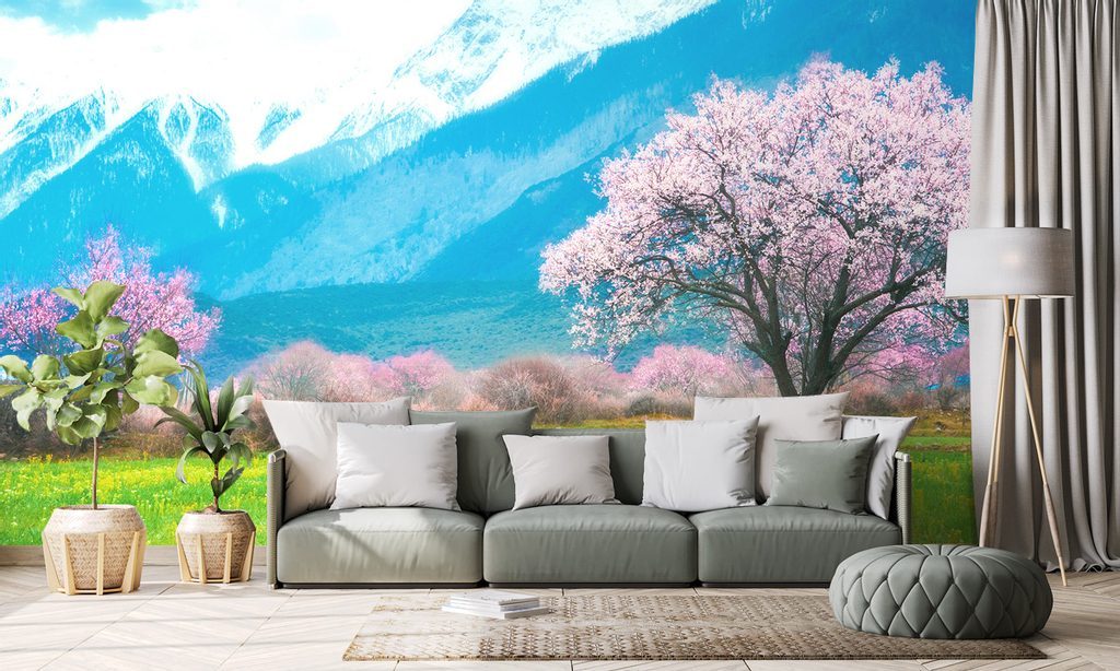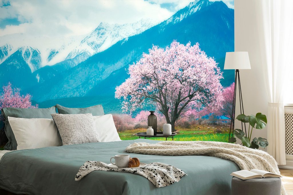 Öntapadó tapéta Sakura a hegyek lábánál