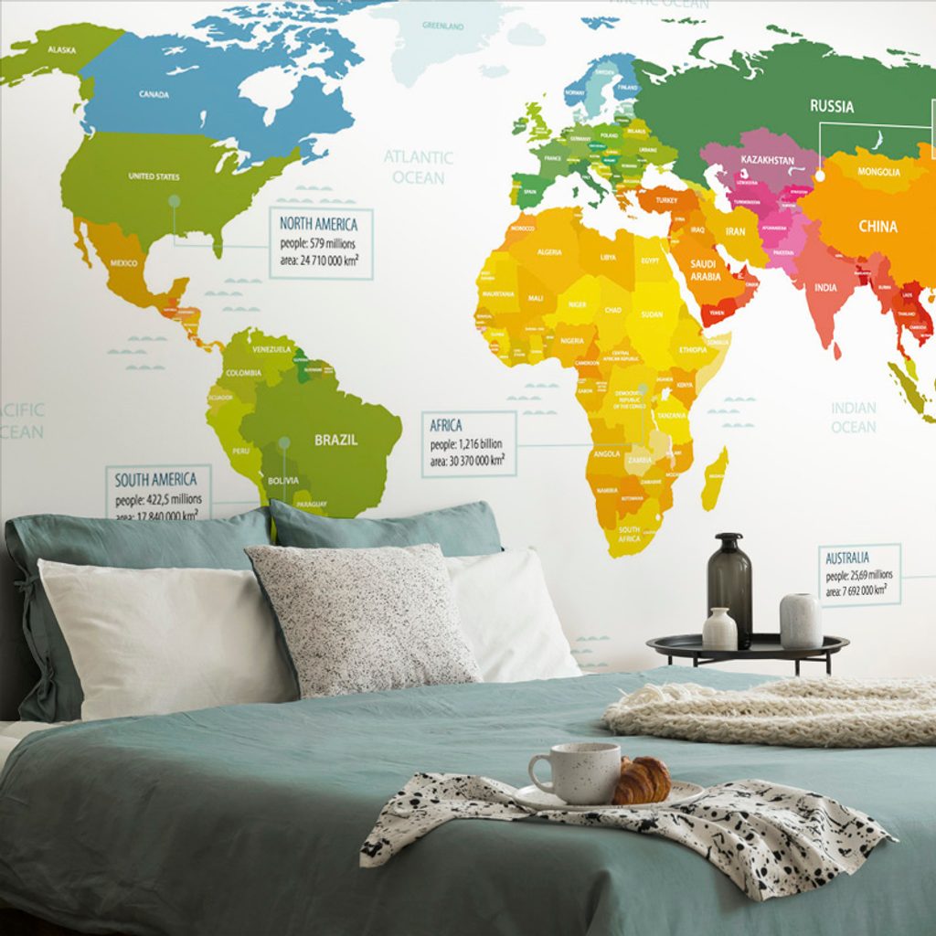 Öntapadó tapéta szemet gyönyörködtető világtérkép bájos színes kivitelben