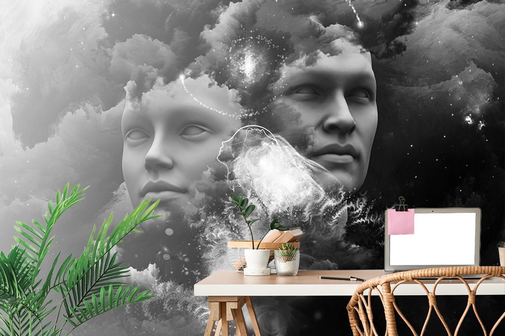 Öntapadó tapéta természetfeletti arcok fekete-fehérben