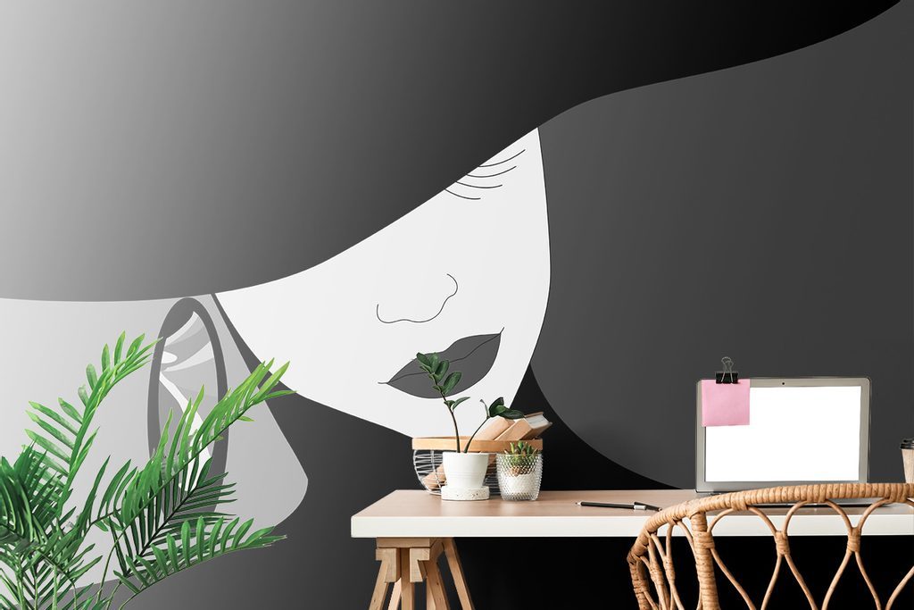 Öntapadó tapéta titokzatos nő kalapban fekete-fehér kivitelben