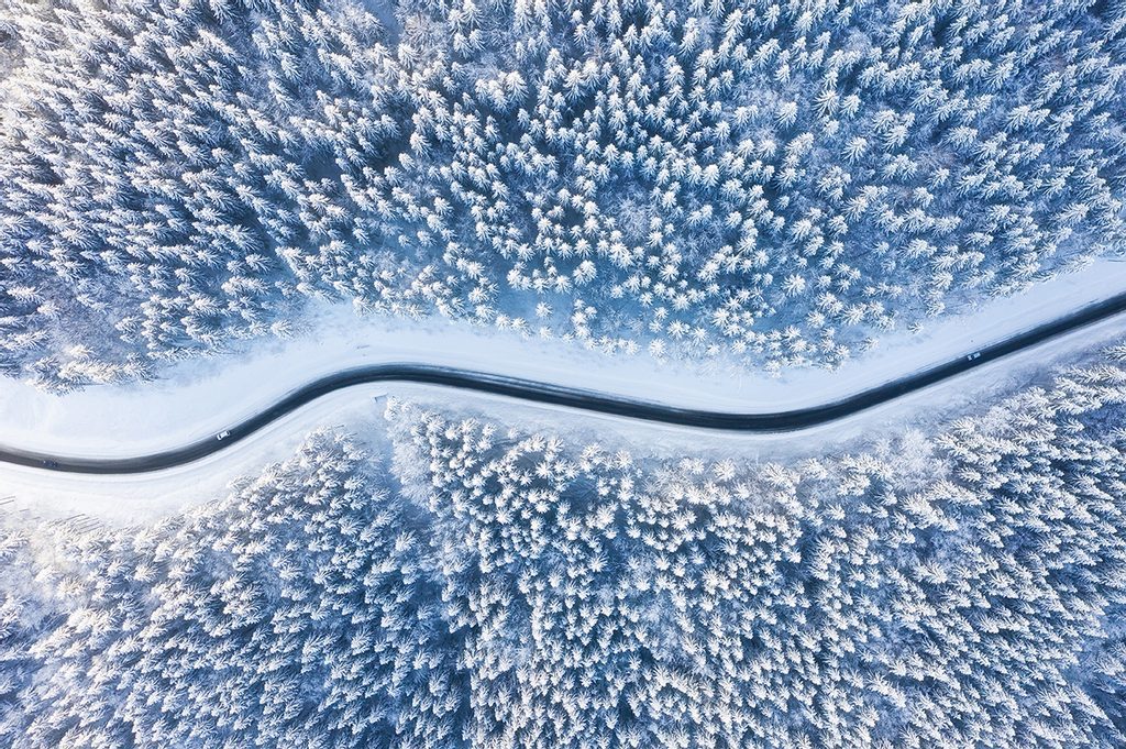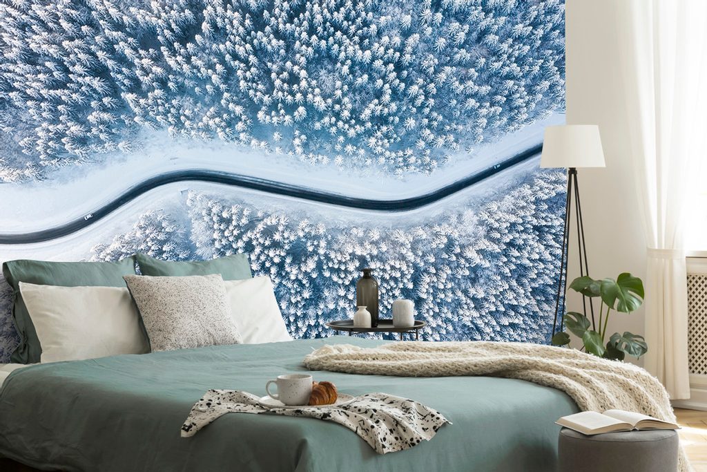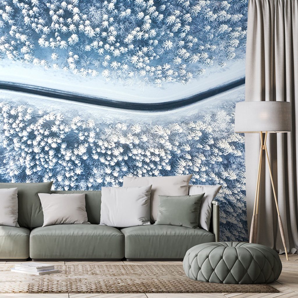 Öntapadó tapéta út a téli tájon keresztül
